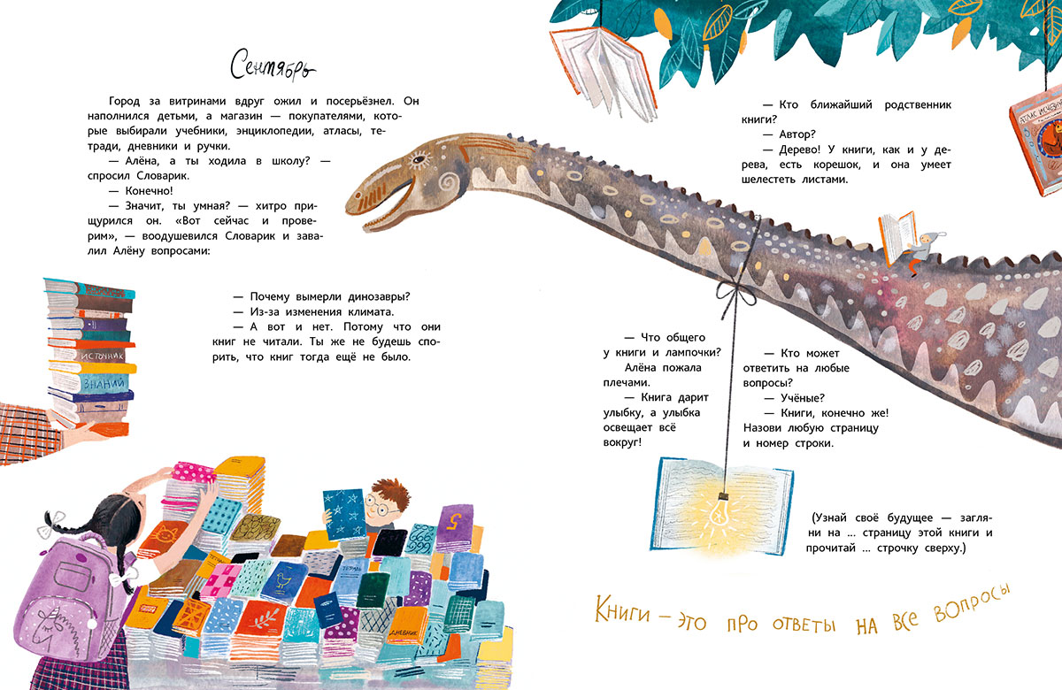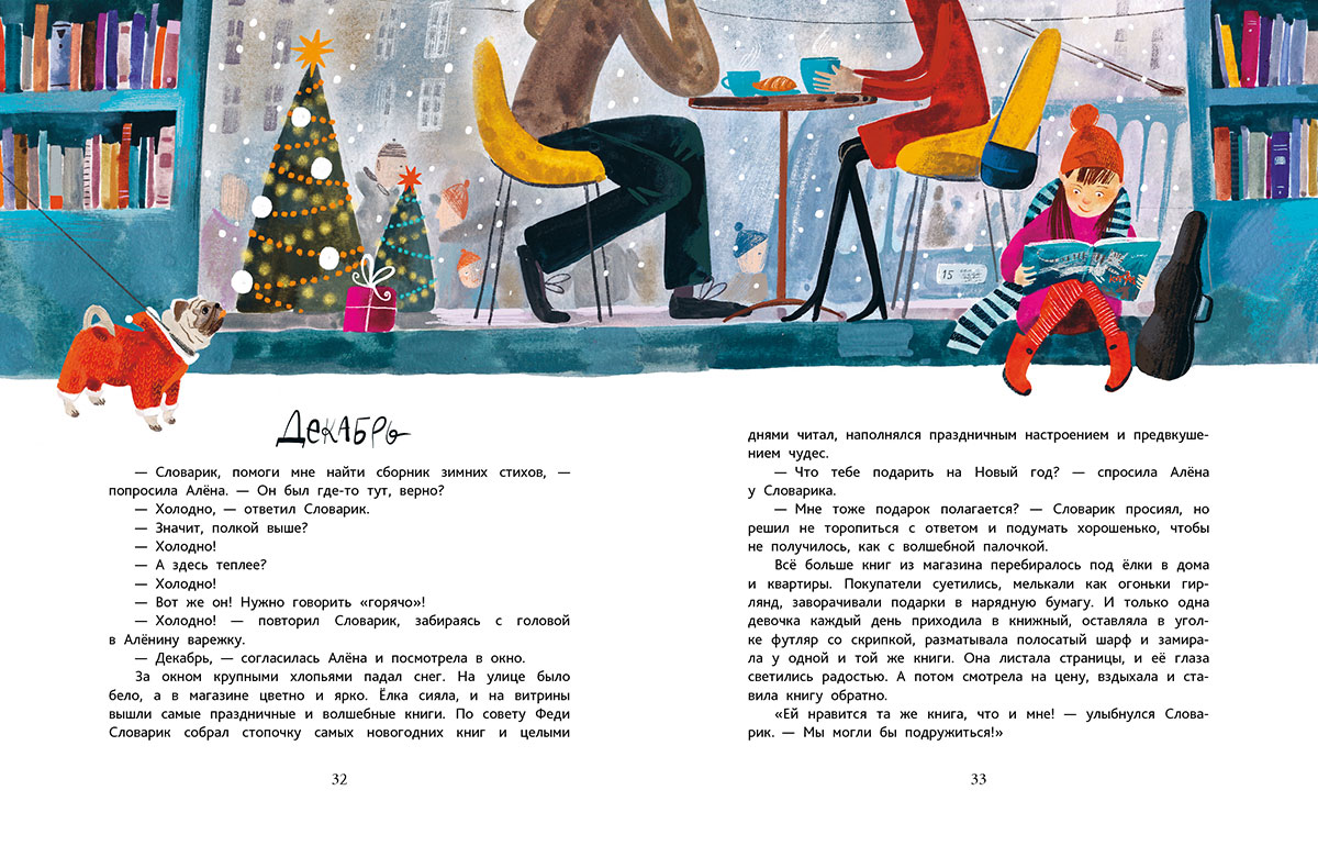 Эта история – про волшебство и приключения, про настоящую любовь и помощь в любых ситуациях, про чудеса и про мечты, которые сбываются. А ещё — про маленького Словарика, который живёт в большом книжном магазине и очень любит книги. Каждый месяц в книжном приносит с собой новые удивительные открытия: Словарик учится читать, открывает закон книжного притяжения, устраивает в книжном настоящий снегопад и совершает настоящее новогоднее чудо. А ещё помогает самому старшему и самому строгому продавцу Алёне увидеть всё другими глазами. Познакомьтесь со Словариком и вы — скорее открывайте эту книгу, и он с удовольствием проводит вас в чудесную книжную вселенную!