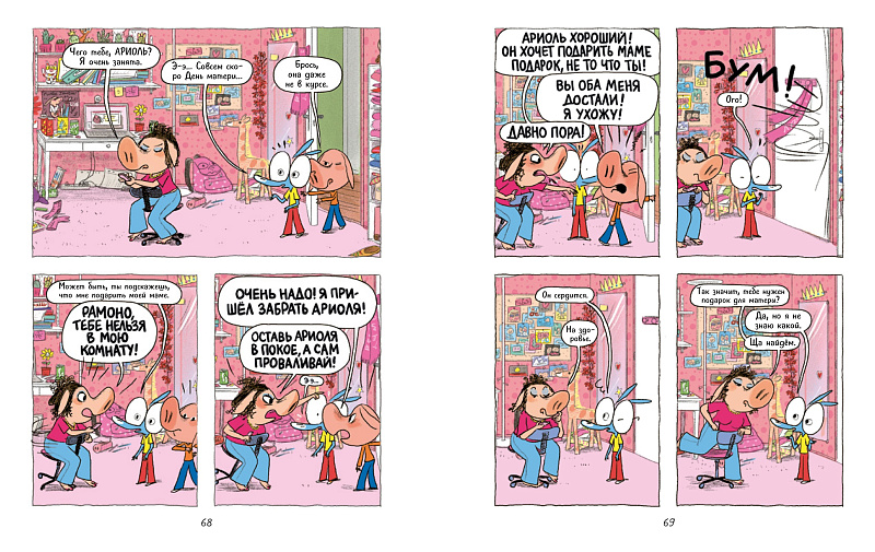 «Ариоль» — это серия весёлых комиксов о повседневной жизни маленького ослика и его лучшего друга, непослушного, но очень симпатичного поросёнка. Они вместе ходят в школу, вместе ездят на каникулы, вместе играют и вместе валяют дурака. Их придумал Эмманюэль Гибер, один из наиболее авторитетных французских комиксистов, обладатель премии Рене Госинни за сценарное мастерство, а нарисовал известный детский иллюстратор Марк Бутаван