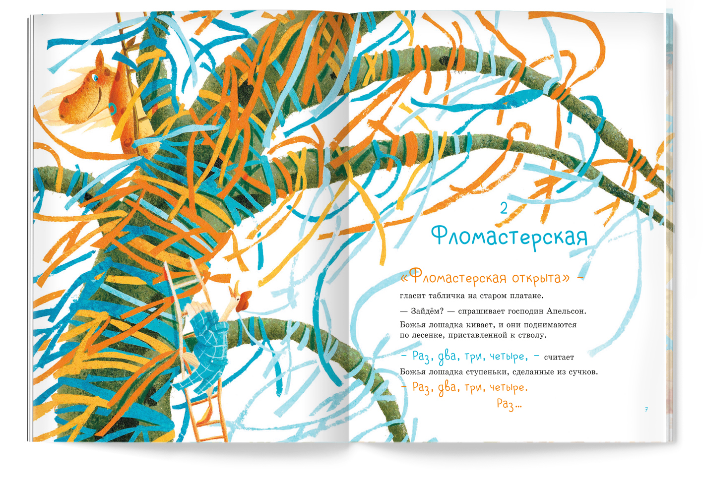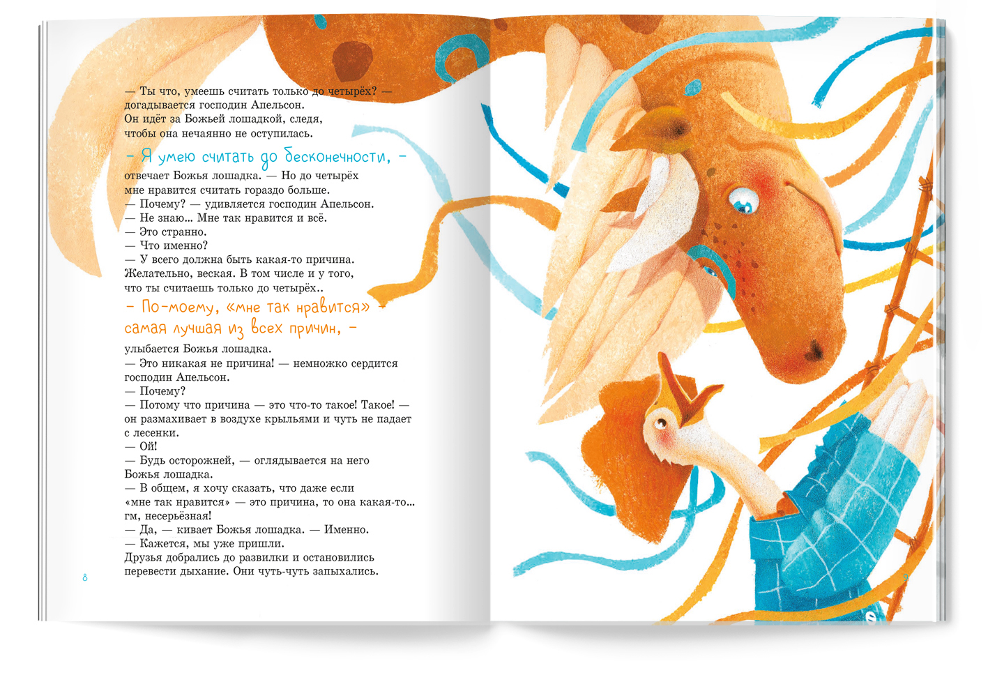 Развороты детской книги "Божья лошадка и господин Апельсон"