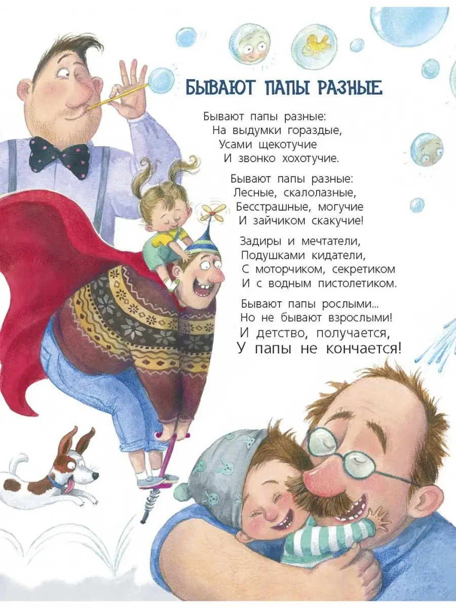 Папа – самый сильный, самый умный и самый большой в мире ребёнок. Ведь детство у пап не кончается никогда! С ними так весело: можно легко превращаться в разведчиков или альпинистов, мчаться по лесу на мопеде и отправляться в удивительные походы на байдарке… Забавные, озорные, а порой очень нежные стихи Ксении Валаханович, посвященные папам, оживают в иллюстрациях Любови Ерёминой-Ношин.