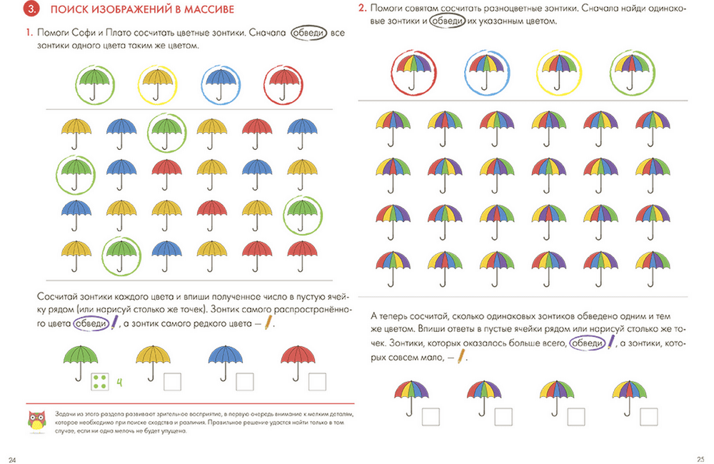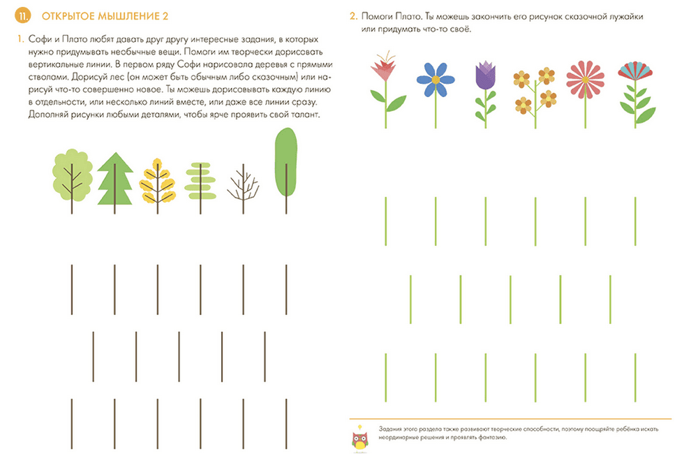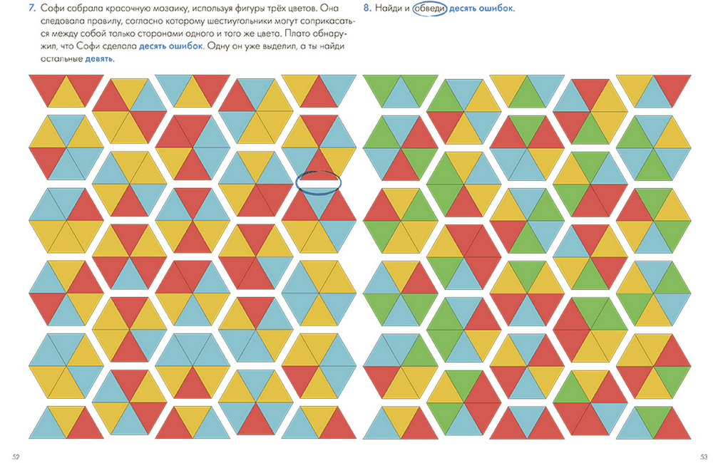 Решая задания, ребёнок научится рисовать и дорисовывать картинки, проходить математические лабиринты, складывать мозаики, находить сходства и отличия различных предметов, разгадывать сложные судоку, а ещё выучит геометрические фигуры.