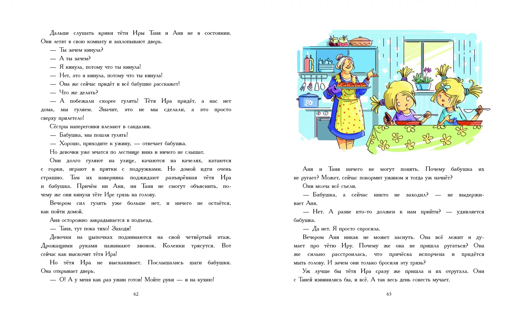 Сёстры Аня и Таня Щукины всё делают вместе: ходят в школу – вместе, сидят дома – вместе, гуляют – вместе, болеют – и опять вместе. Играют и ссорятся – тоже вместе. Что, правда, неудивительно, ведь по одному ссориться сложно.