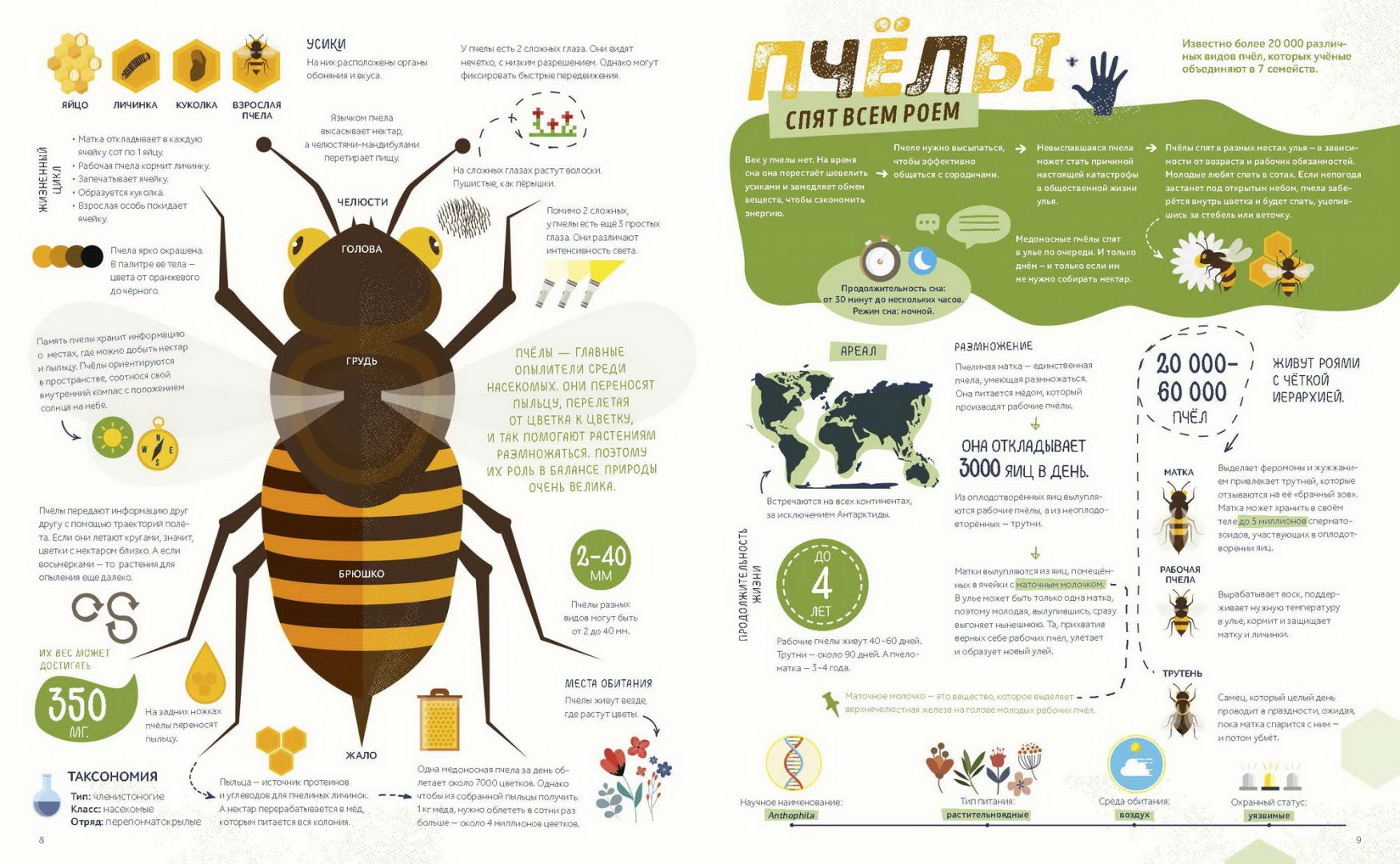 Home 3-6 лет Как спит пчела? Удивительные факты о животных и их суперспособностях – детская книга Пинтоса и Ианнуззи на русском языке.