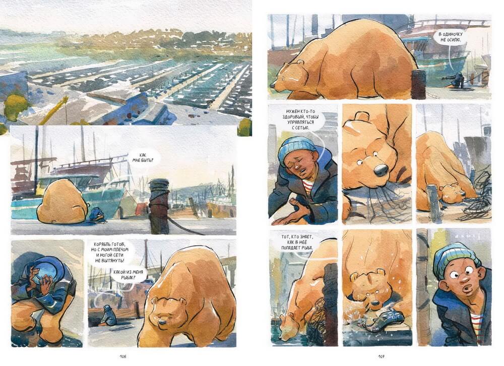 Добрая и трогательная графическая история о невероятной дружбе маленького человека и большого зверя. Акварельные иллюстрации делают этот рассказ настолько теплым, что с книгой не хочется расставаться.