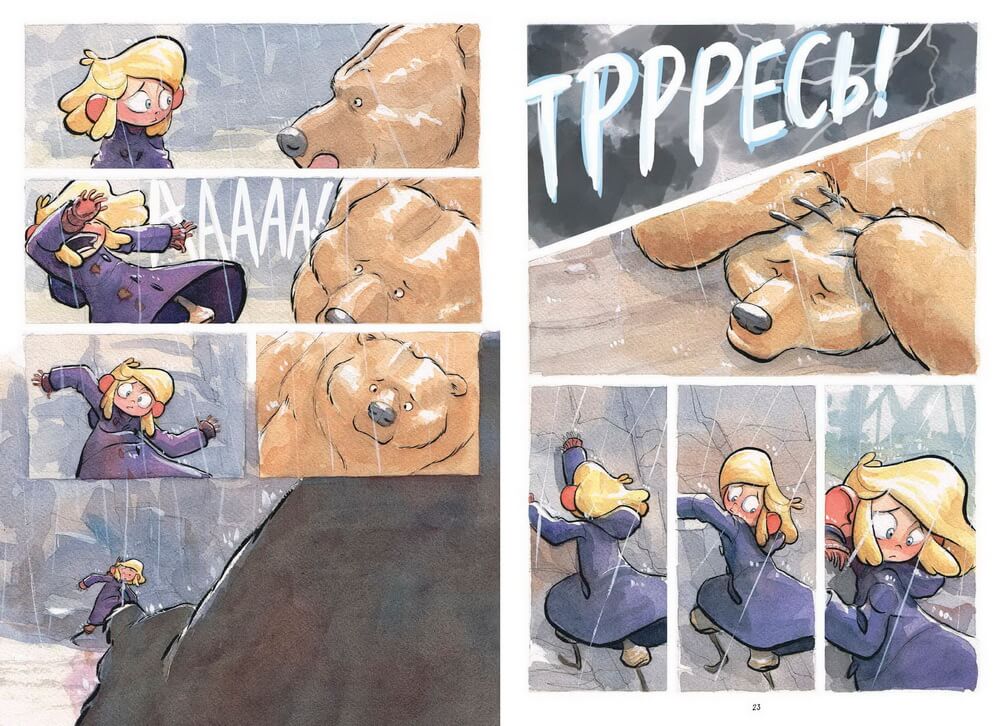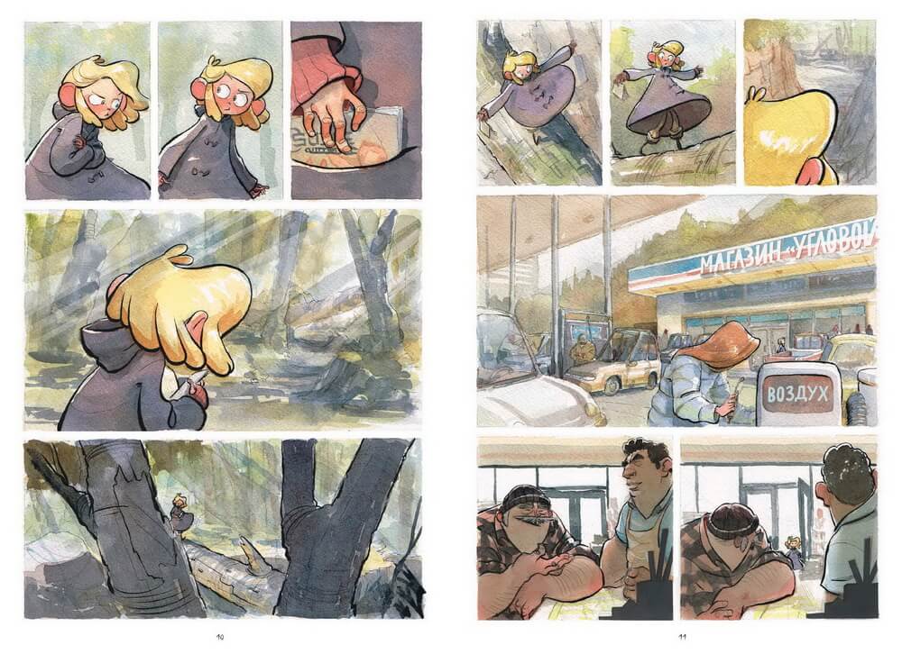 — Для создания комикса автор использовал нежную акварель. Он изобразил очаровательных героев, с которыми так и хочется отправиться в путешествие. Иллюстрации оживляют героев книги и влюбляют в себя.