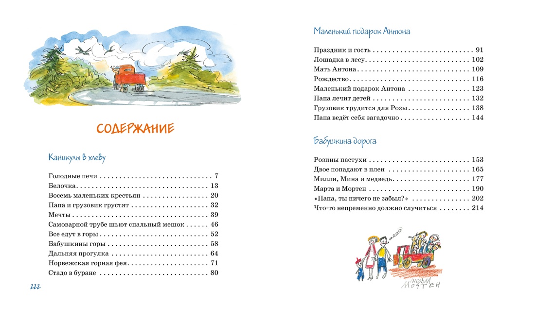 Повести «Каникулы в хлеву», «Маленький подарок Антона» и «Бабушкина дорога» рассказывают о том, как многодетное семейство, переехав на любимом грузовике из тесной городской квартирки в просторный деревенский дом, устроилось на новом месте.