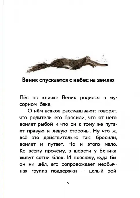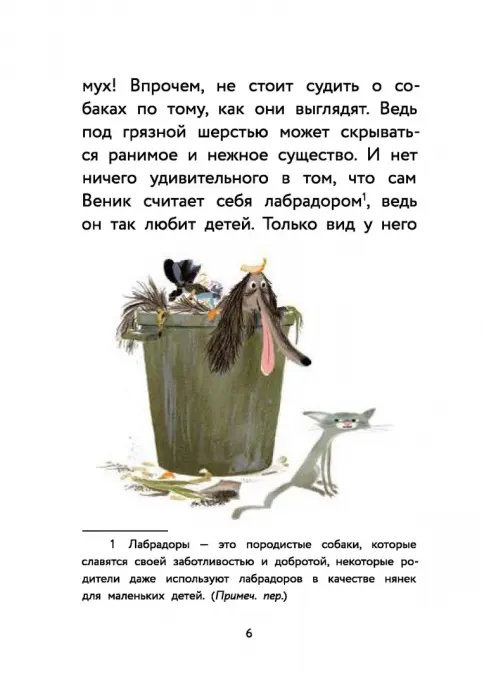 Знакомьтесь: пёс Веник – очаровательный, наивный и нежный! Да, он родился в мусорном баке и слегка похож на швабру. Но не стоит судить по внешности. Сам Веник считает себя лабрадором, ведь он так любит детей. И так хочет найти себе друзей! И пусть вначале он ошибается и готов отправиться за первым встречным человеком, бросившим ему: “Пойдём со мной”. К концу книги он обязательно разберётся, кому можно доверять и с кем стоит дружить.