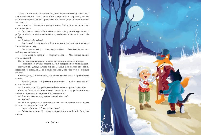 - Твердый переплет с цветной фольгой, красочные иллюстрации на каждой странице, плотная белая бумага и крупный шрифт