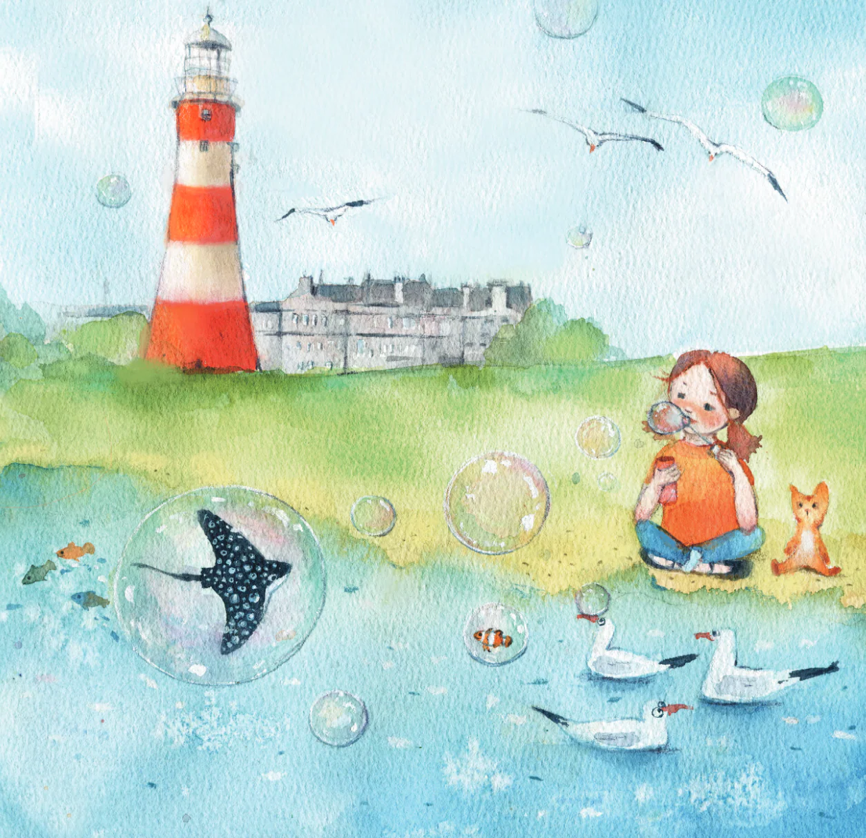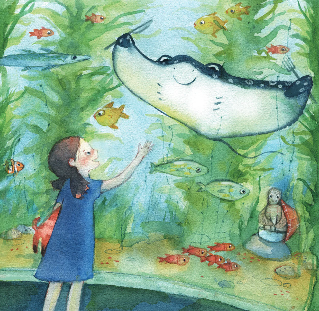 Lizzie is five. She lives in Plymouth, next to the sea. One day she went to visit the National Marine Aquarium, the largest aquarium in the United Kingdom. She liked it so much! She especially liked a spotted ray, it had small spots and looked funny. Since then Lizzie decided that they could be friends, and she started dreaming.