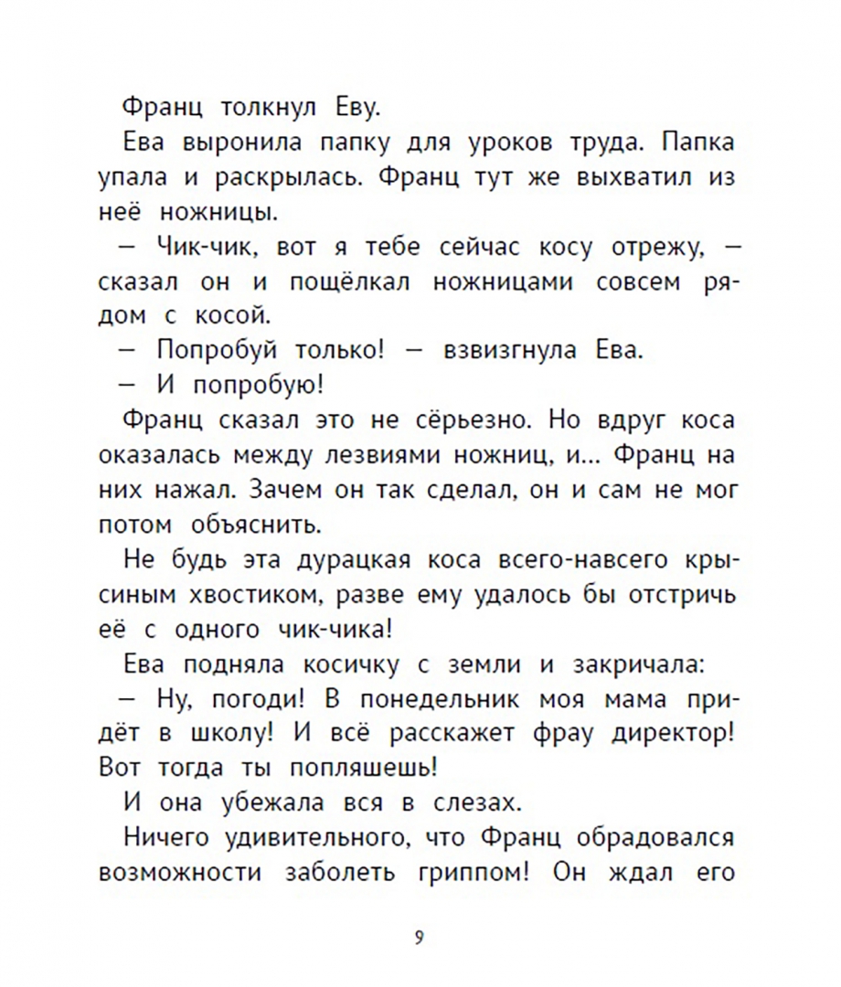 В этой книге классика детской австрийской литературы Кристине Нёстлингер вас ждёт новая порция рассказов про Франца, которому уже восемь с половиной лет. Франц по-прежнему ниже всех в классе, но всё же не такой маленький, как раньше: за последние полгода он вымахал на целую ладонь. А ещё у Франца вырос нос, и теперь его редко принимают за девочку. Всё бы ничего, но на смену этим проблемам пришли две новые…