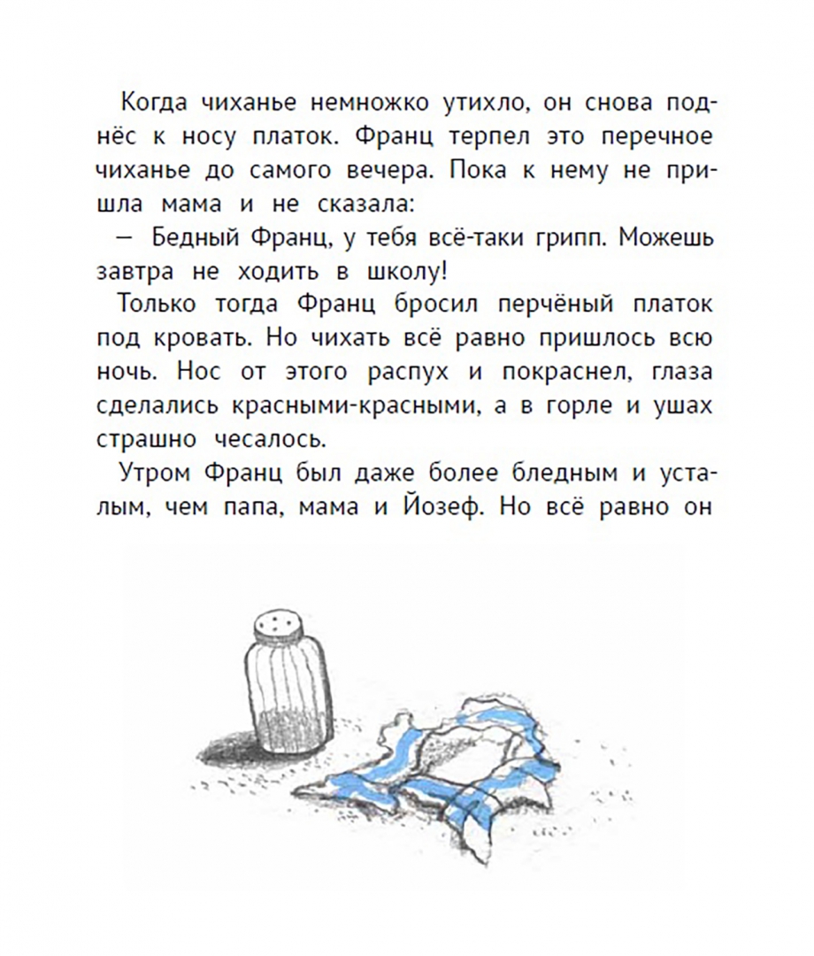 Развороты детской книги Кристине Нёстлингер про Франца и болезни
