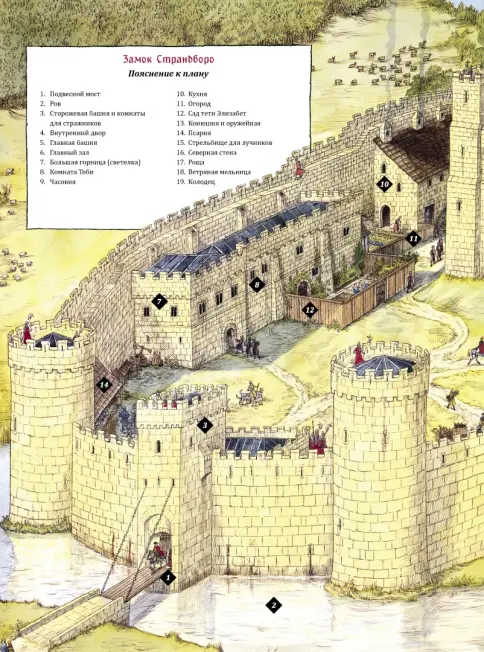 Мир средневековой Англии оживил замечательный художник Крис Ридделл. Его детальные иллюстрации перенесут читателя в замок Страндборо и покажут жизнь его обитателей во всех подробностях.
