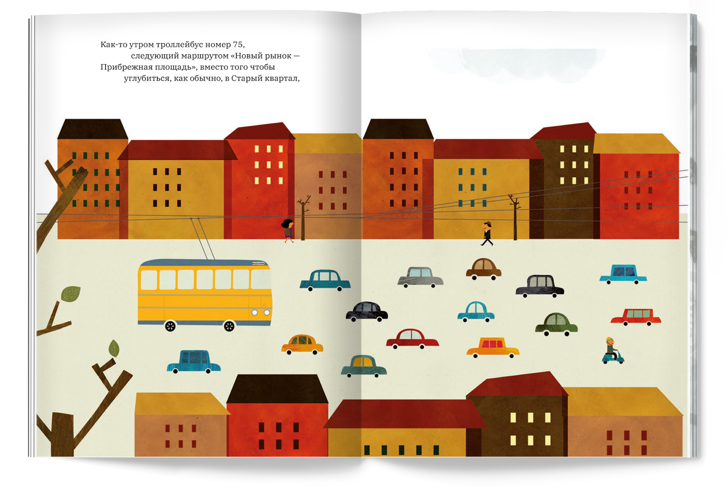 Развороты детской книги Джанни Родари "Троллейбус номер 75"