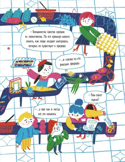 – Книга учит разбираться в разных видах пластика и другого вторсырья.