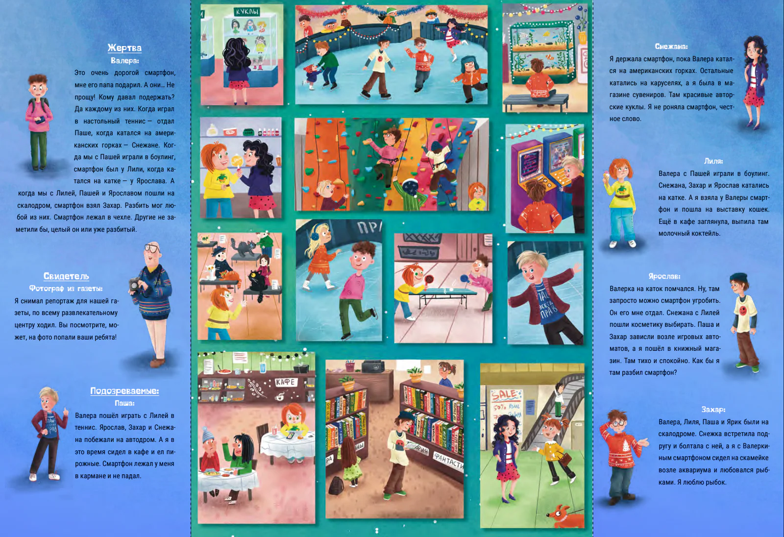 В книге десять детективных историй. Это не просто истории, а загадки. Ты можешь разгадать каждую из них, найти виновного. Присоединяйся к команде детективов!